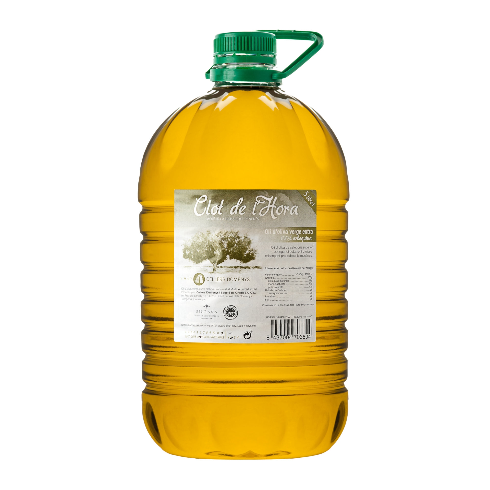 Oli d’oliva verge extra emparat per la DOP Siurana, obtingut mitjançant procediments mecànics que respecten al màxim la qualitat del fruit. Destaca per les seves excel·lents propietats organolèptiques i pels seus beneficis nutricionals, aportant antioxidants i vitamines.